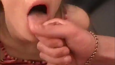 Chick sucks on old dudes dick and