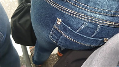 Great Ass In Tight Denim Skirt