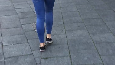 Junge Fotze in Hotpants wackelt mit dem Arsch