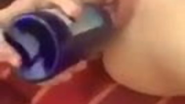 German girl loves bottle on class