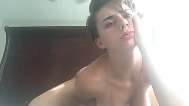 skinny girl with nice tits oiled up and masturbating