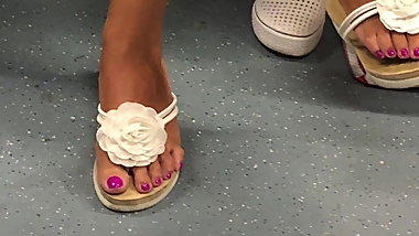 Sexy nurse feet in white stockings