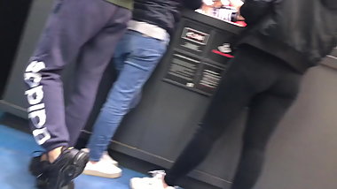 Cheap thin leggings reveals all big teen ass, hard nipples