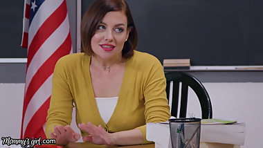Teen Tara Angelina blows big dick with busty teacher