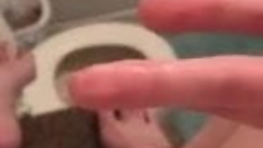 Blonde teen peeing and finger her pussy while i cum on her