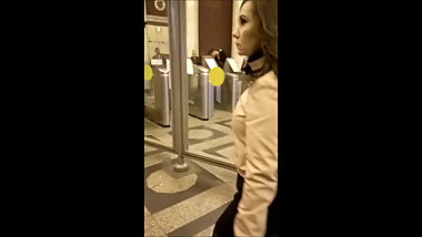 Sexy leggy blonde in tights waiting for the train