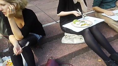 Candidk Teen walikng in flats and black tights