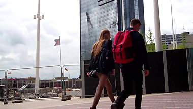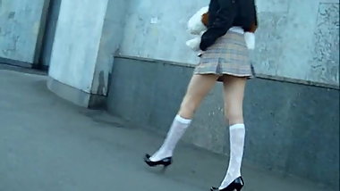 Candidk Teen walikng in flats and