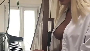 Sexy leggy blonde in tights waiting
