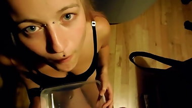 Shy Brunette Nicolette Noir Drinks Her Own Piss