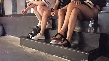 Yng Gf's flashing public upskirt, sexy legs feets
