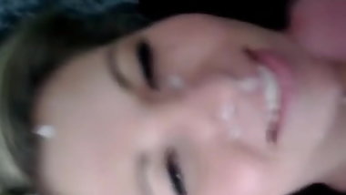 Grosse ejac sur le visage d'une jeune geek