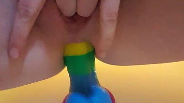 Colombian ebony teen is riding a very huge dildo