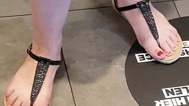 Cute candid teen feet dangling in flip flops!