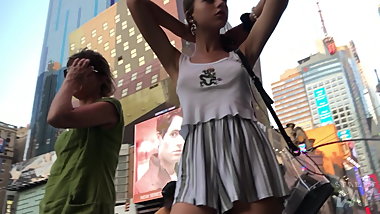 Creepshot - AMAZING Teen Upshorts reveals Nice Butt - No Bra