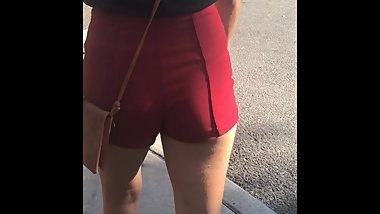 Blonde In Super Tight Spandex Shorts Waiting for Class