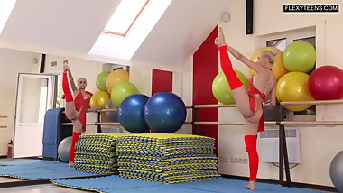 Sofya with big saggy tits does hot gymnastics